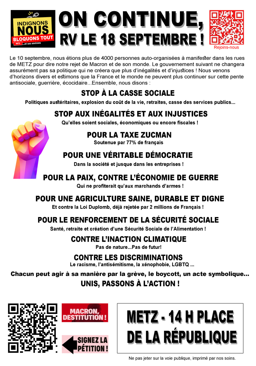 Accueil > Groupe géolocalisés > France > GRAND EST > 57 - Moselle > Metz > Manif 18/09 14h Pl. de la République METZ