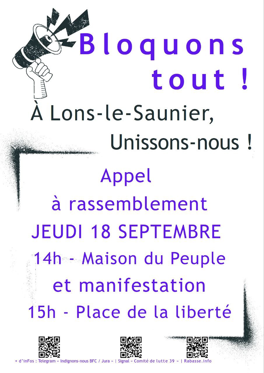 Accueil > Groupe géolocalisés > France > BOURGOGNE-FRANCHE-COMTE > 39 - Jura > Lons-le-Saunier > Rassemblement 18/09 14h Maison du Peuple