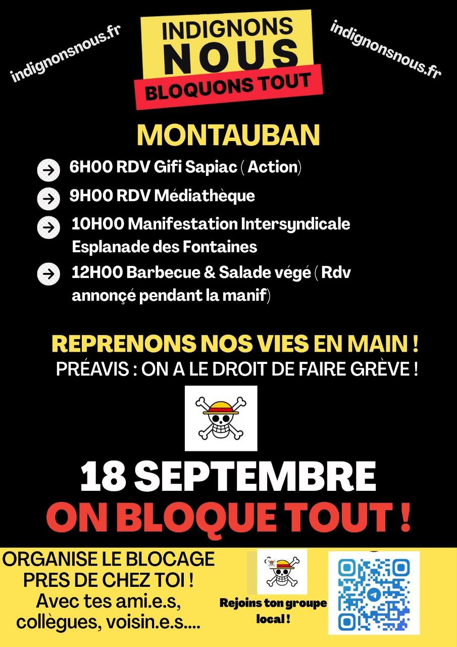 Montauban : 10h esplanade des fontaines 12h repas