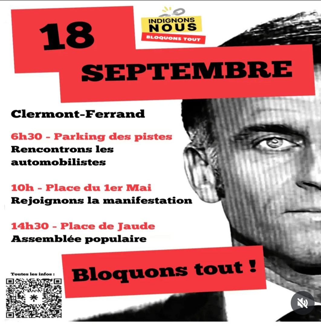 6h30 Parking des pistes 10h MANIFESTATION, pl. 1er Mai Clermont-Ferrand 14h30 Assemblée Populaire place de Jaude