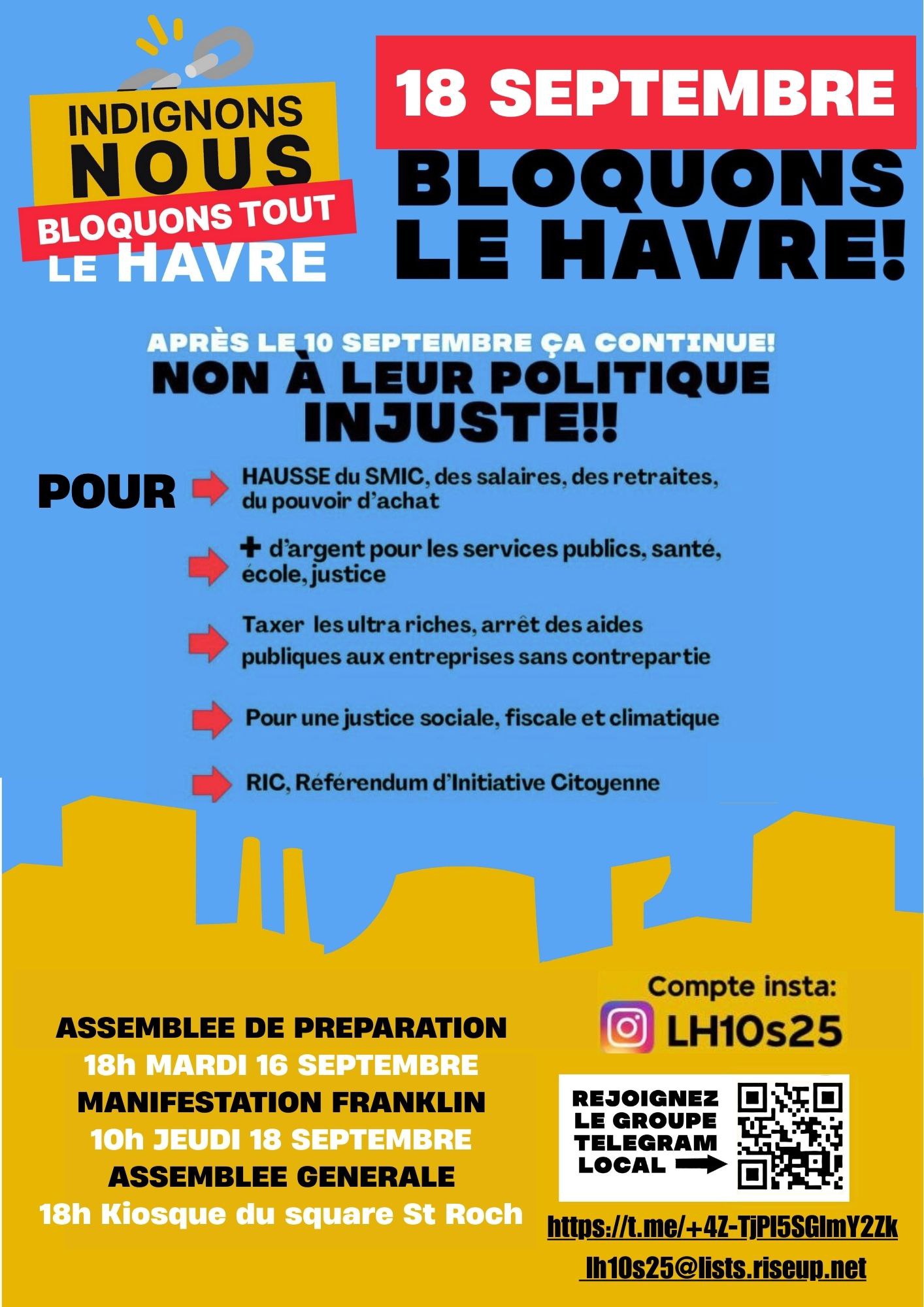 (vérifiez la localisation) 10h : Manifestation Franklin 18h : AG, Kiosque du square St-Roch