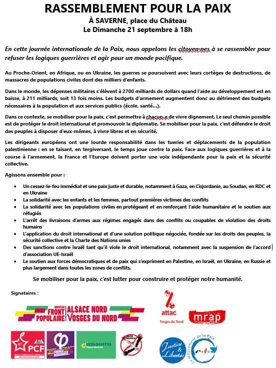 Rassemblement 21/09 18h Pl. du Gal de Gaulle SAVERNE