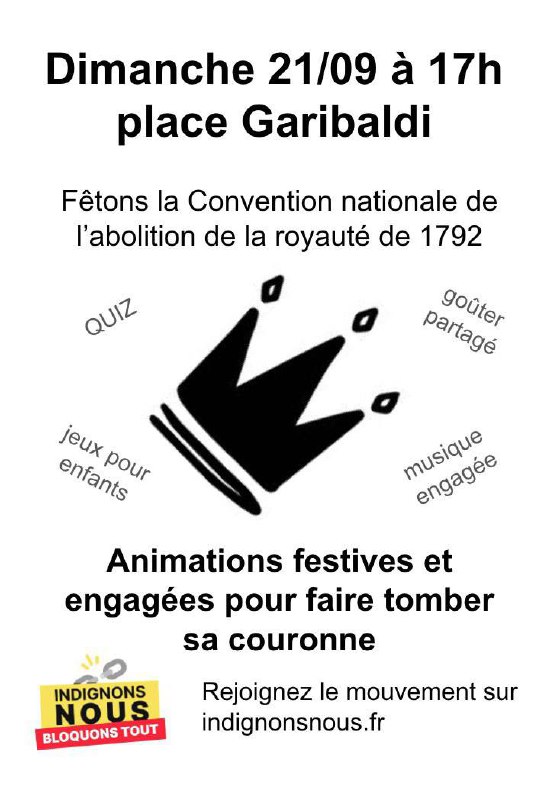 Accueil > Groupe géolocalisés > France > PROVENCE-ALPES-CÔTE D’AZUR > 06 - Alpes-Maritimes > Cannes Nice Antibes Grasse Menton > Rassemblement festif NICE, 21/09 17h, Place Garibaldi