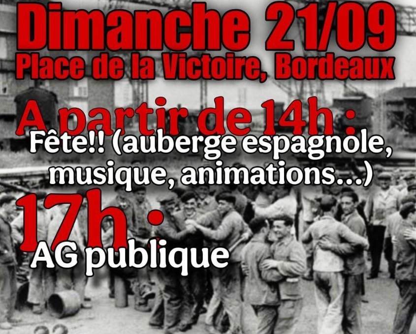 Accueil > Groupe géolocalisés > France > NOUVELLE-AQUITAINE > 33 - Gironde > Bordeaux > Pour en finir avec le roi Macron - BORDEAUX 21/09 à 14h Place de la Victoire