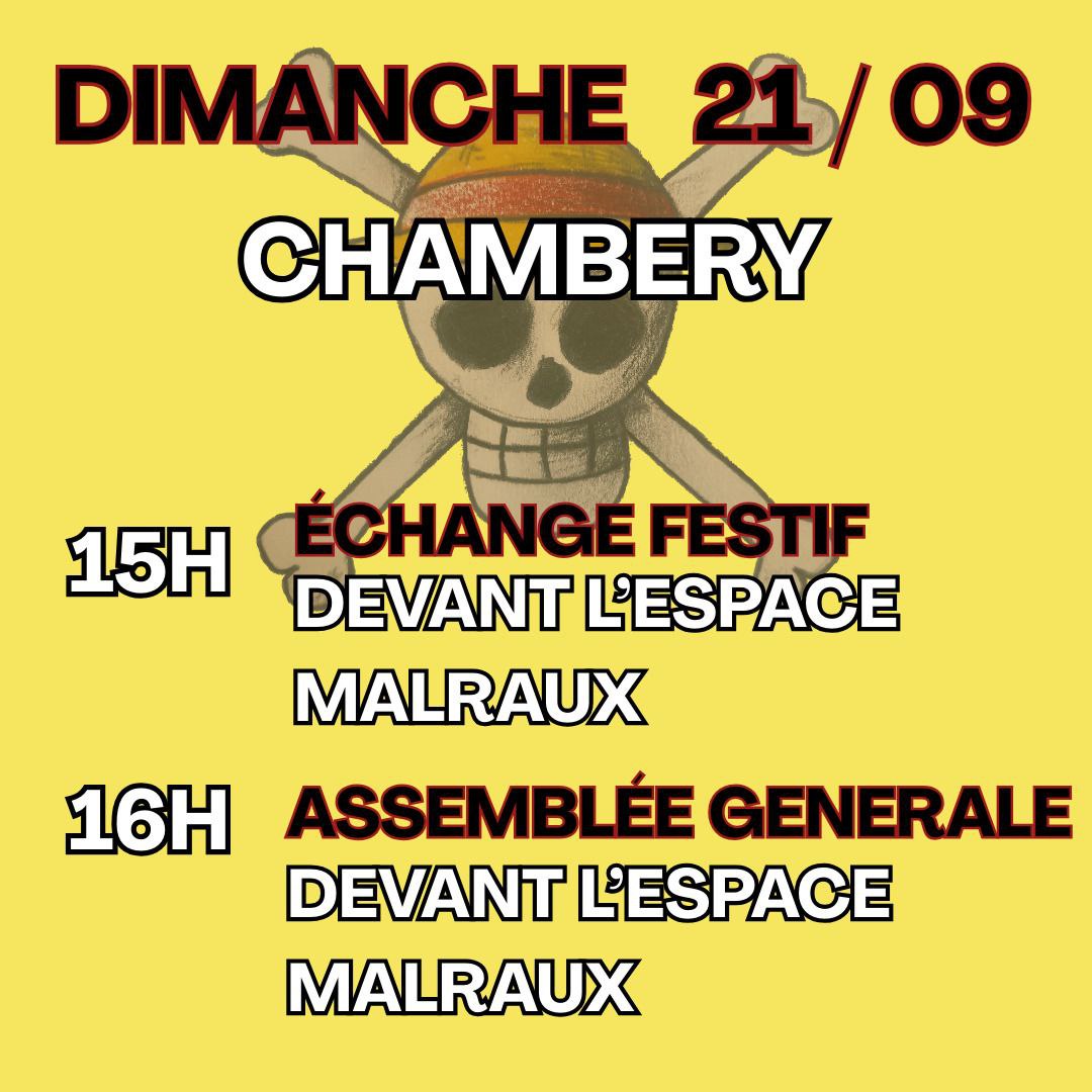 Accueil > Groupe géolocalisés > France > AUVERGNE-RHÔNE-ALPES > 73 - Savoie > Rassemblement festif 21/09 15h Espace Malraux CHAMBERY