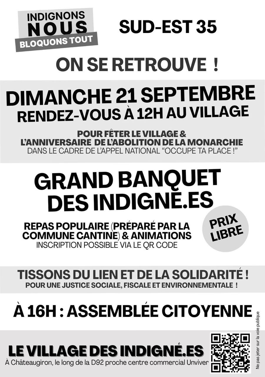 Accueil > Groupe géolocalisés > France > BRETAGNE > 35 - Ille-et-Vilaine > Châteaugiron > Rassemblement festif 21/09 12h Village des indigné-es CHATEAUGIRON