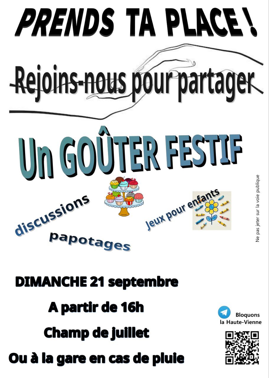 Accueil > Groupe géolocalisés > France > NOUVELLE-AQUITAINE > 87 - Haute-Vienne > Rassemblement festif 21/09 16h Champ de juillet LIMOGES
