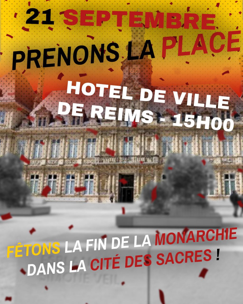 Accueil > Groupe géolocalisés > France > GRAND EST > 51 - Marne > Reims > Rassemblement festif 21/09 15h Pl. de l’Hôtel de ville REIMS