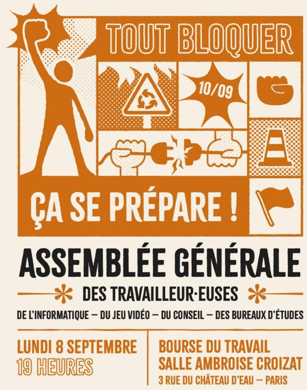 Les travailleurs et travailleuses de l’informatique, du jeu vidéo, du conseil et des bureaux d’études sont appelés à se rassembler à la bourse du travail de Paris le 8 septembre pour préparer les grèves et blocages du 10.