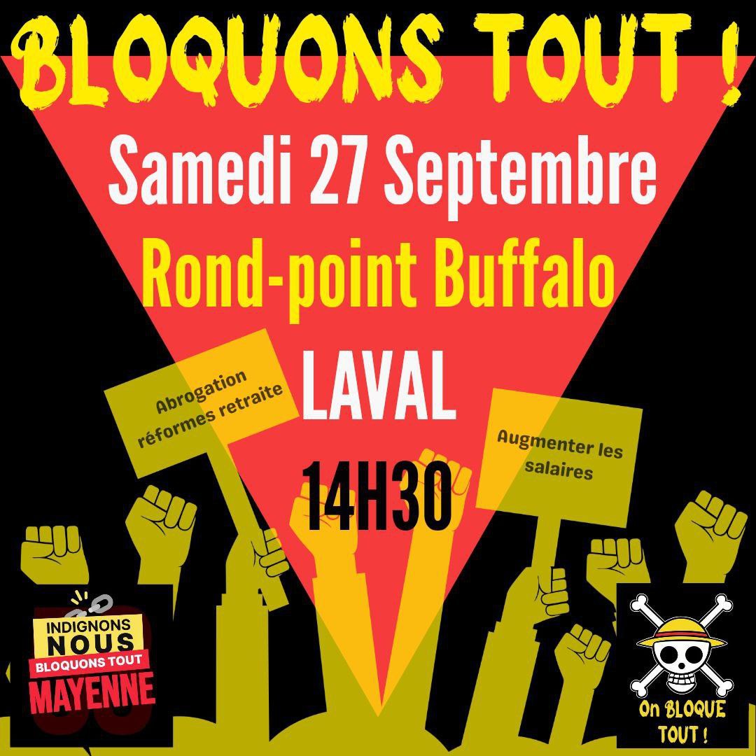 Accueil > Groupe géolocalisés > France > PAYS DE LA LOIRE > 53 - Mayenne > Rassemblement 27/09 14h30 Rond-point Buffalo LAVAL