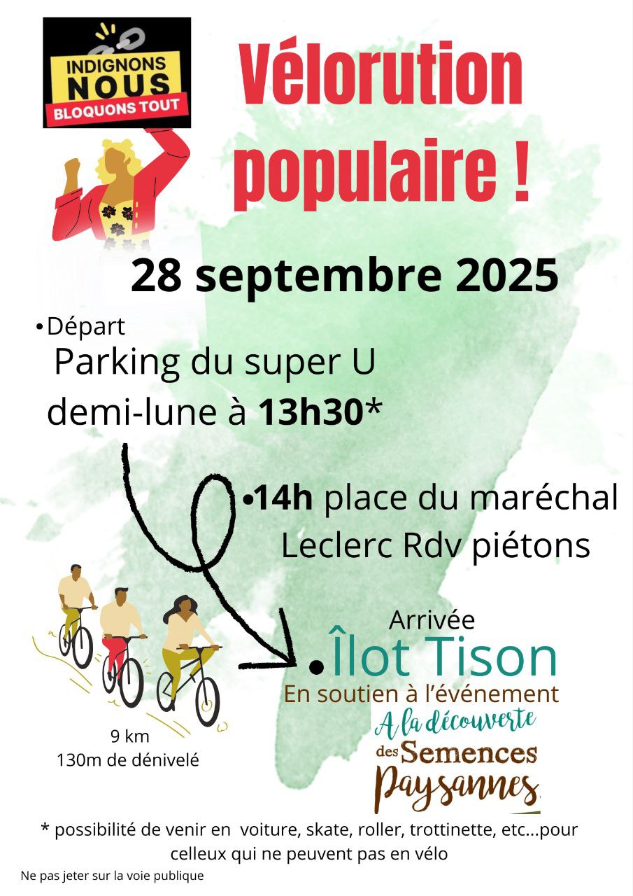 Accueil > Groupe géolocalisés > France > NOUVELLE-AQUITAINE > 86 - Vienne > Poitiers > Vélorution 28/09 13h30 Parking Super U demi-lune POITIERS