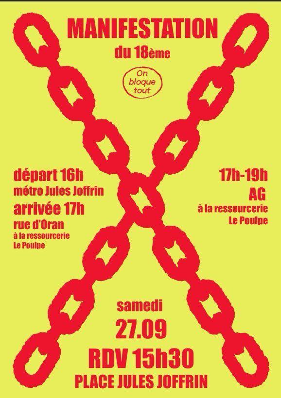 Accueil > Groupe géolocalisés > France > ÎLE-DE-FRANCE > 75 - Paris > Paris 18e > Manif 27/09 15h30 Pl. Jules Joffrin PARIS